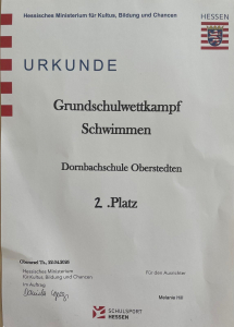 Beim ersten Schwimmwettkampf der Grundschulen im Hochtaunuskreis konnte ein Team aus insgesamt zwölf Kindern der dritten und vierten Klassen mit großem Einsatz überzeugen. Die jungen Schwimmerinnen und Schwimmer traten gemeinsam gegen andere Grundschulen an und stellten dabei nicht nur ihr sportliches Können, sondern vor allem ihren starken Teamgeist mit großer Freude unter Beweis.